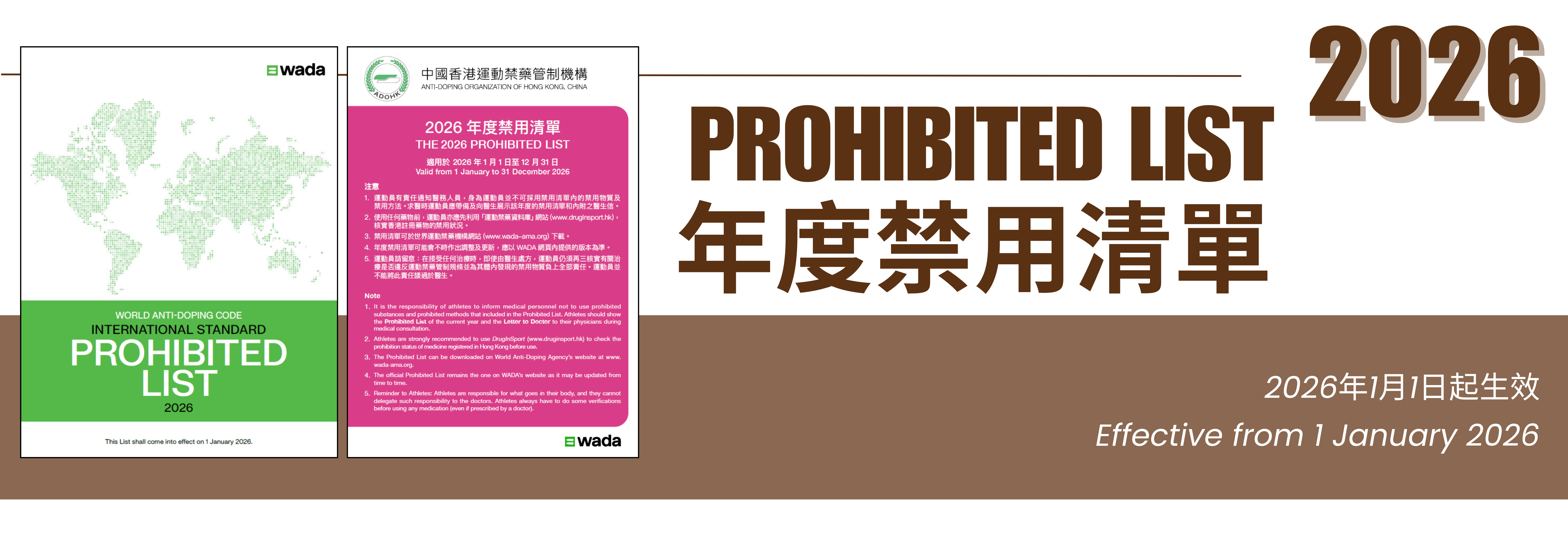ADOHK 2026 Prohibited List ADOHK Anti-Doping Education and Learning platform (ADEL) Update Your Whereabouts DrugInSport The Prohibited List ADAMS Education Resources Latest News The 2026 Prohibited List has come into force 2026-01-02 Important Notice: 1st Quarter 2026 Whereabouts Submission Deadline – 15 December 2025 2025-12-09 ADOHK Newsletter《TrueSelf》(December 2025) 2025-12-01 See more Events Like ADOHK on Facebook Follow ADOHK on Instagram