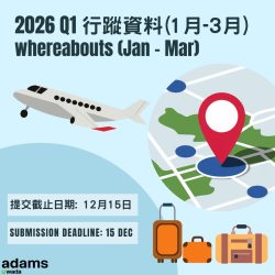 ADOHK 2025 禁用清單 ADOHK 運動禁藥管制教育及學習平台(ADEL) 更新你的行蹤資料 運動禁藥資料庫 禁用清單 運動禁藥管制行政管理系統 教育資源 最新消息 重要通告: 提交2026年度第一季行蹤資料的截止日期為2025年12月15日 2025-12-09 中國香港運動禁藥管制機構通訊《TrueSelf》(2025年12月) 2025-12-01 2026年度禁用清單 2025-11-28 閱讀更多 活動 在 Facebook 讚好 ADOHK Follow ADOHK on Instagram